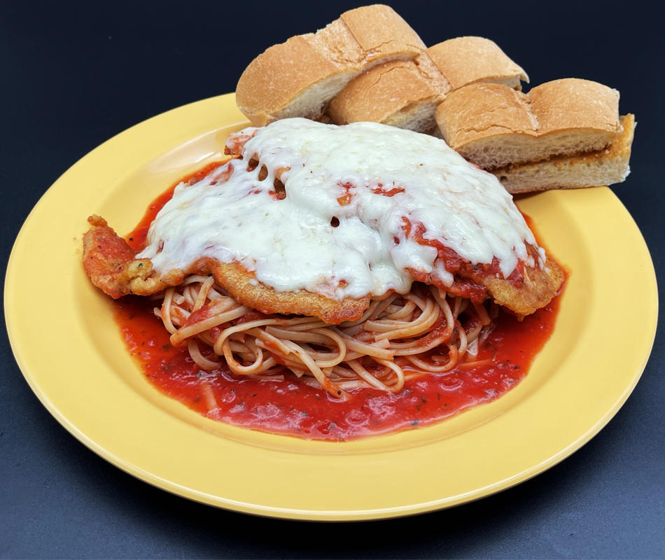 Breaded Chicken with tomato sauce and melted Mozzarella Cheese