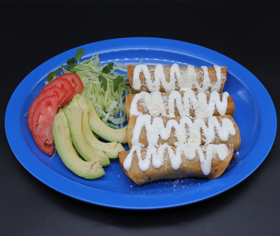 Rolled and deep fried corn tortilla, lettuce, tomato,avocado, sour cream, cotija cheese (Order of 4)
