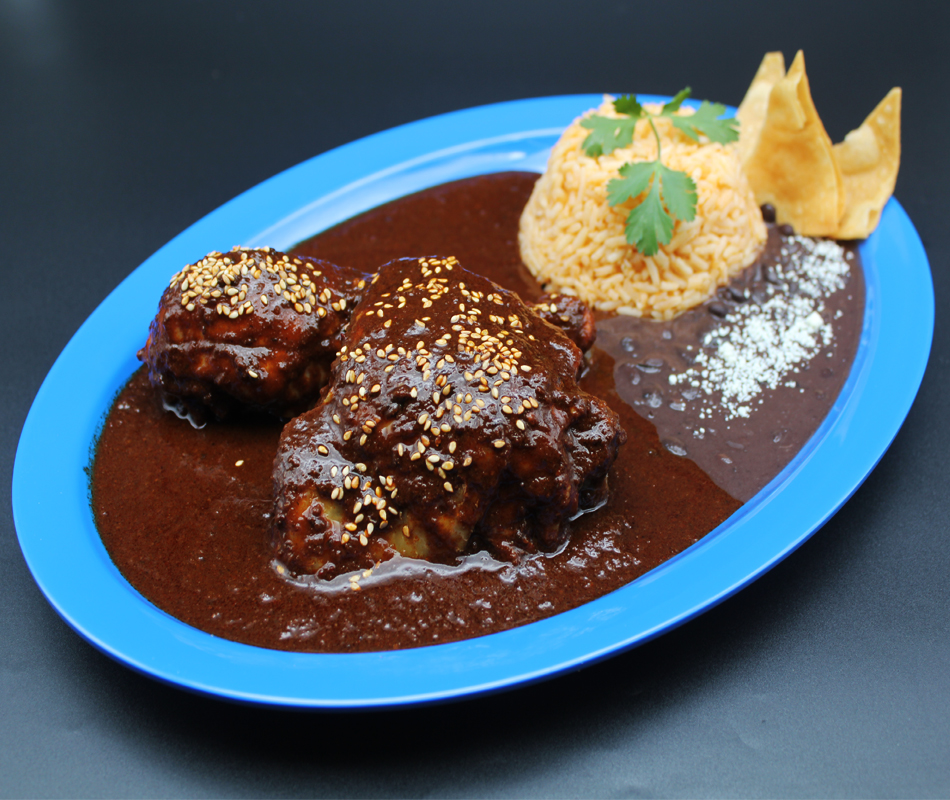 Chicken or beef in mole sauce, served with lettuce, avocado, sour cream & cotija cheese